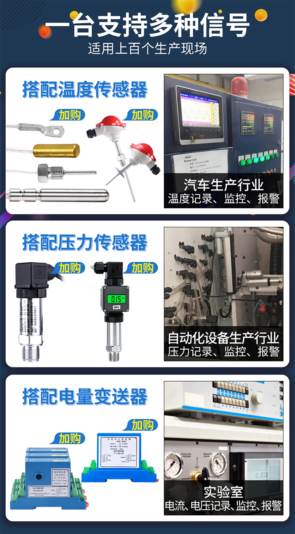 觸摸式彩色無紙記錄儀具有 60 個運算函數、24 路模擬量輸入、3 路 開關量輸入、3 路脈沖量輸入、6 路模擬量變送輸出、16 路開關量輸出, 可實現運算、顯示、記錄、報警、分析統計報表、高速采樣等功能,通 過 RS-232/RS-485 和以太網通訊接口,可實現遠程實時監控、組態管理、 歷史數據讀取等功能,通過 U 盤可實現組態管理、監控畫面管理和歷史 數據管理等功能。