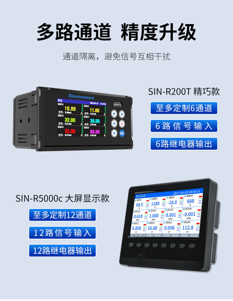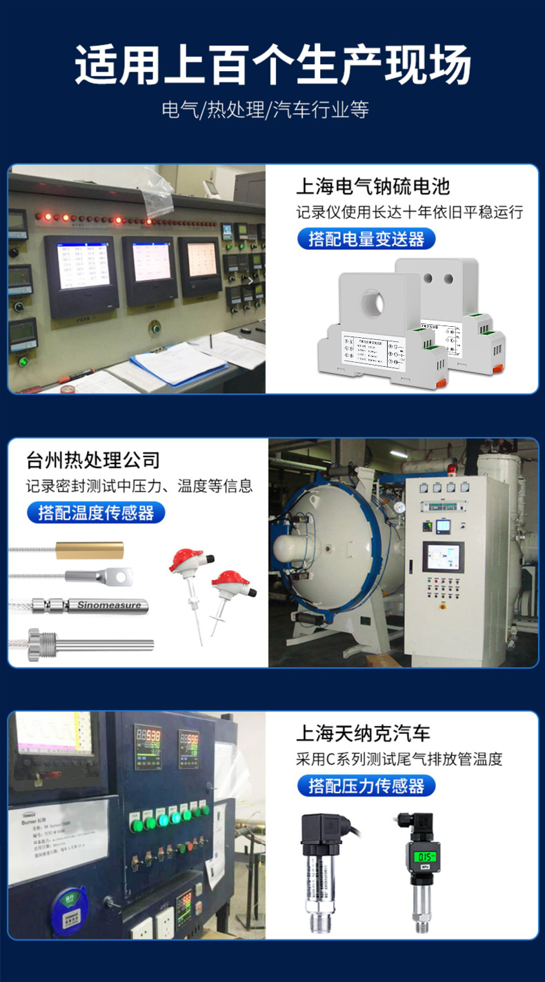 應用行業 SIN-R5000C無紙記錄儀 12 路萬能輸入(可組態選擇輸入:標準電壓、標準電流、熱電偶、熱電阻、毫伏等)。